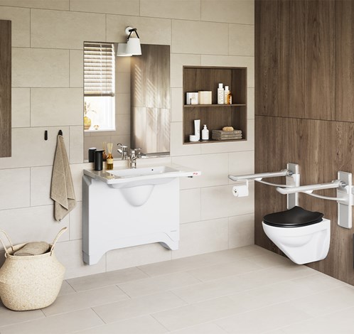 Selnova Comfort servant har gripevennlige kanter og god avlastningsplass for enkel tilgang. Selnova Comfort vegghengt toalett har ekstra høyde (ca. 46 cm) for enklere av- og påstigning, og er lett å rengjøre med rimfree design.