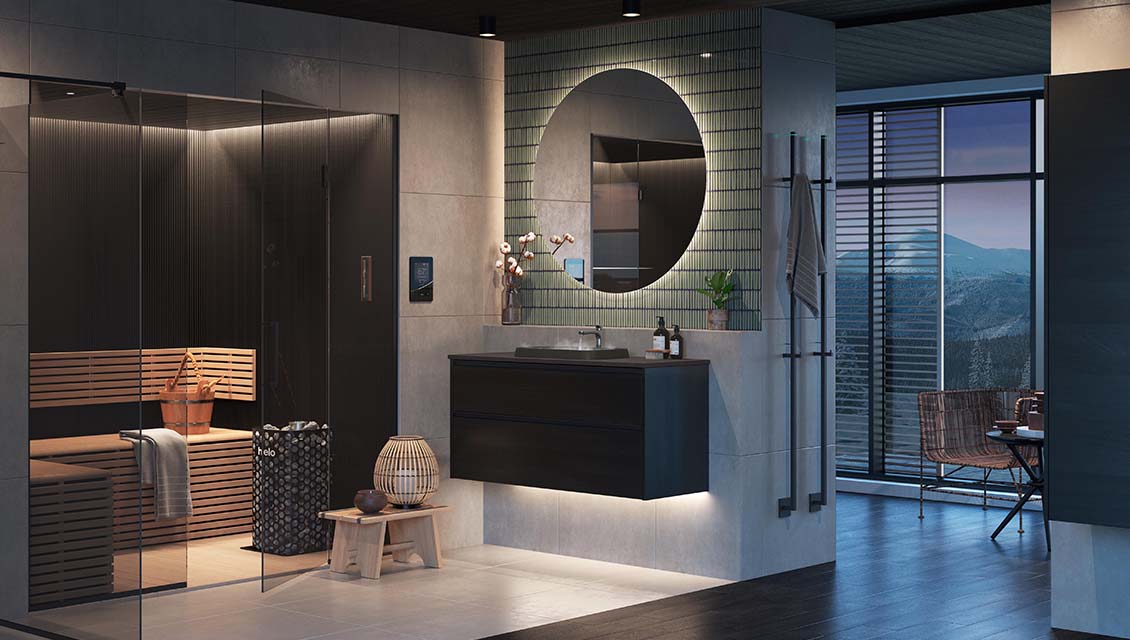 Badet er ditt lille gjemmested. Med mørke flater og stilrene elementer understreker du ro og fred. Suppler stilen med elementer i tre og fargede fliser for en personlig touch.